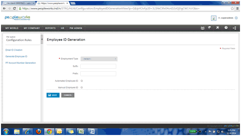 Following are the steps to configure rules to generate Emp Id automatically: